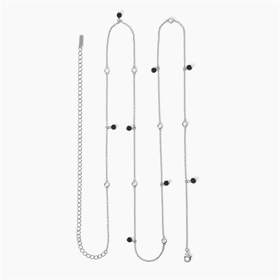 Catena girovita in argento 925/°°° rodiato con zirconi bianchi Ø 2.5 mm e agata nera Ø 4 mm, lunghezza regolabile da 77 cm a 95 cm