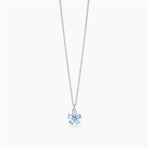 Girocollo in argento 925 rodiato e acquamarina sintetica. Catena maglia rolò. Pendente cm 1 con acquamarina sintetica. Misura regolabile da cm 40 a cm 45.