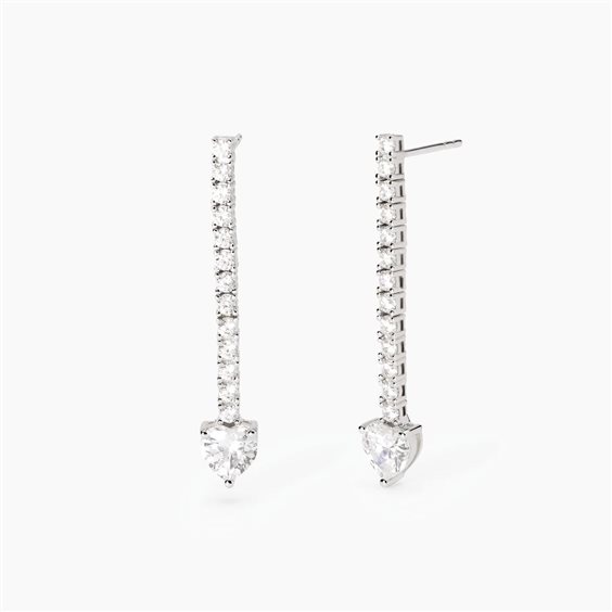 Orecchini tennis in argento 925/°°° rodiato con zirconi Ø 2 mm e taglio cuore 6x6 mm, lunghezza totale orecchino 3.7 cm