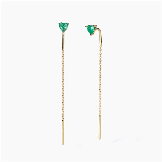 Orecchini in argento 925/ººº placcato oro 18K con catena rolò 1.1 mm e smeraldo sintetico taglio cuore 4x4 mm, lunghezza totale orecchino 5.6 cm
