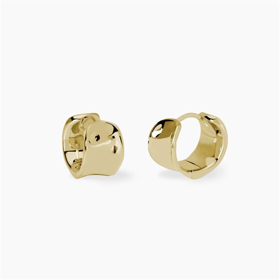 Orecchini a cerchio in argento placcato oro 18K con forma ondulata. • Dimensione orecchino: 8x12 mm • Materiale: Argento rodiato 925 • Finitura: Placcatura in oro 18K