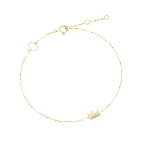 Bracciale in oro giallo 18 carati della Collezione Les Petits de Maman. Il bracciale presenta una mini corona di 6 mm con catena passante e un mini cuore Maman traforato. Il bracciale può essere regolato in tre misure: 15 cm, 16,5 cm e 17,5 cm. Chiusura con anello a molla.