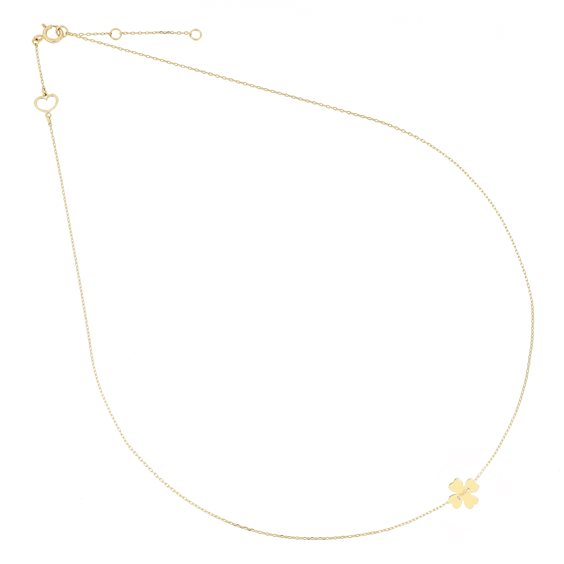 Girocollo in oro giallo 18 carati della Collezione Les Petits de Maman. Il girocollo presenta un mini quadrifoglio di 6 mm con catena passante e un mini cuore Maman traforato. Il girocollo può essere regolato in tre misure: 32 cm, 33,5 cm e 34,5 cm. Chiusura con anello a molla.