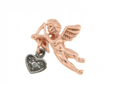 Orecchino lobo cupido in argento con cuore placcato oro rosa.