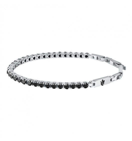 Bracciale da uomo di maserati. Gioiello realizzato in acciaio con zirconi neri. Lunghezza: 22 cm