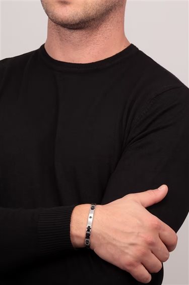 Braccialetto da uomo Maserati realizzato in ceramica nera e acciaio anallergico. Targa centrale satinata con logo del brand nero. Ha lunghezza totale di 22 cm; possibilità di rimuovere alcune maglie alla chiusura.
