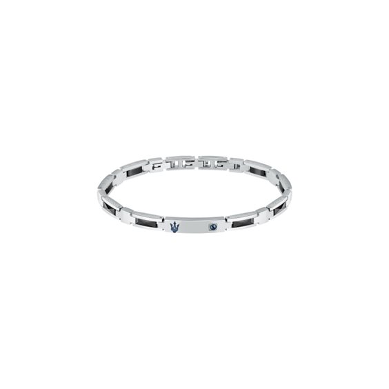 Bracciale Maserati uomo Bracciale in acciaio con inserti in ceramica nera e logo in ip blu Misura regolabile da 18,5 cm a 21,5 cm