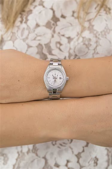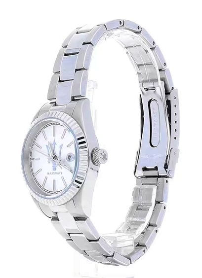 Orologio Maserati femminile in acciaio lucido e satinato con quadrante silver e datario . Dimensione cassa 32mm