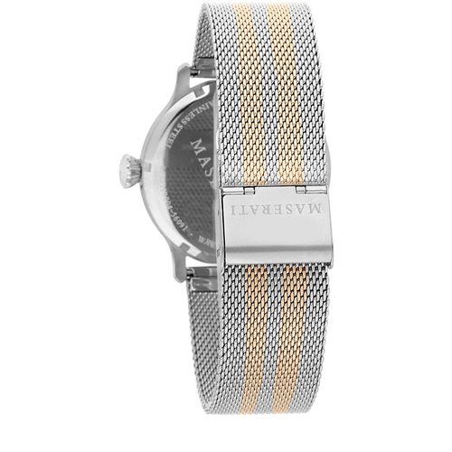 Prodotto: orologio solo tempo uomo Maserati Epoca R8853118005 Orologio Solo Tempo Da Uomo Di Maserati Della Collezione Epoca. Questo Modello Ha Movimento Sii Vd78A. La Cassa È In Acciaio Pvd Oro Rosa Con Quadrante Di Colore Argento Bianco Brillante. Il Cinturino È In Metallo Di Colore Argento E Oro Rosa Con Fibbia Deployante. Questo Modello Ha Vetro Minerale E Restistenza All'Acqua Di 10 Atm. La Cassa Ha Dimensioni Di 48X42Mm E Spessore Di 9,7 Mm. La Referenza È R8853118005 Questo solo tempo verrà spedito con Scatola Originale Maserati