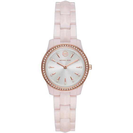 Genere: Donna, Materiale e finitura cassa: Gomma, Misura cassa: 28mm, Spessore cassa: 7,00, Colore cassa: Rosa, Materiale cinturino: Ceramica, Colore cinturino: Rosa, Chiusura: Fibbia deplojante, Water resistant: 5 atm, Garanzia: Ufficiale 2 anni Michael Kors, Confezione: Originale Michael Kors