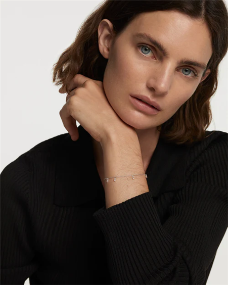 MATERIALE: Argento sterling PIETRE: Zirconi bianchi DIMENSIONI DELLE PIETRE: 4 mm LUNGHEZZA DELLA CATENA: Chiusura regolabile da 14 cm a 18 cm PESO: 0,94 g