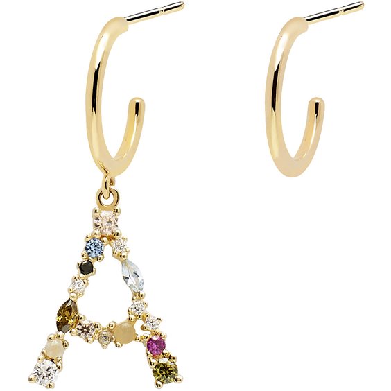 Orecchini Da Donna Di Pd Paola Della Collezione I Am. Gioiello Realizzato In Argento Di Colore Oro. Orecchini Con Zirconi. La Chiusura È Tradizionale Iniziale "A"