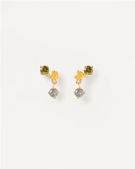 MATERIALE: Argento sterling 925 FINITURA: Placcatura in oro 18k PIETRE: Labradorite, iced zirconia gialla, zirconia verde DIAMETRO PIETRE: 3 mm PESO: 1.24 mm