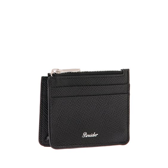 Porta Carte con zip in pregiata pelle di vitello stampa saffiano. Ideale per tenere in ordine le carte di credito e con pratica zip per monete e banconote. Il logo Pineider firma l'accessorio. Un oggetto indispensabile da avere sempre con sè. Made in Italy.