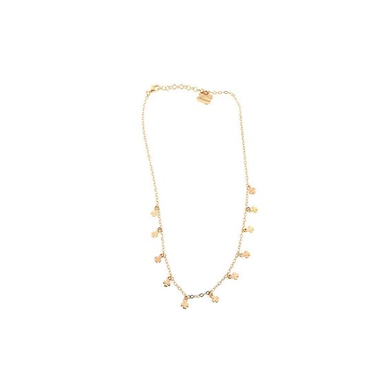 Collana Piti Malì Couture realizzata in argento 925% bagnato in oro rosa, la collana è impreziosita da 10 charm a quadrifoglio, lunghezza 40 centimetri, chiusura a moschettone.