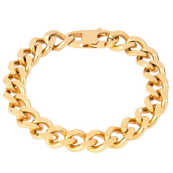 Bracciale della collezione Groumette in bronzo laminato oro giallo. La misura è regolabile, la chiusura è con moschettone.