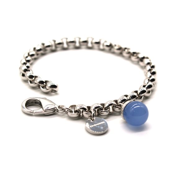 Bracciale Rebecca a catena in bronzo argentato con pietra idrotermale azzurra a sfera. Cod. prodotto: bhdbbl03