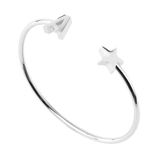 Bracciale rigido, aperto e snodabile, in in acciaio lucido. E' indicato per polsi medio/piccoli.
