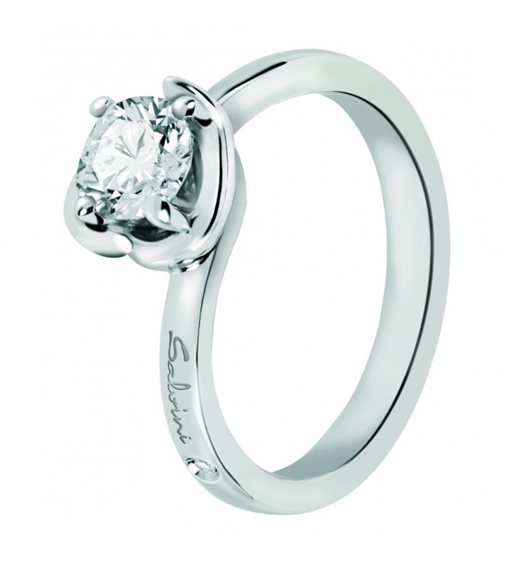 Anello solitario della collezione Abbraccio in oro bianco con diamante a taglio rotondo di caratura 0,18.