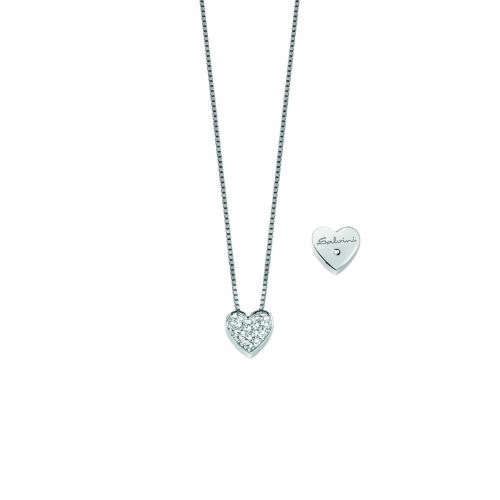 Collana in oro bianco con ciondolo a cuore in diamanti taglio brillante kt 0.05 GH.