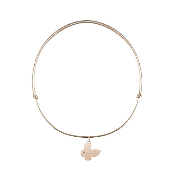 MINIMAL POP EXT Collierino in pelle regolabile con pendente a forma di farfalla in oro rosa con diamante (ct. 0,01). Ref. 20072973