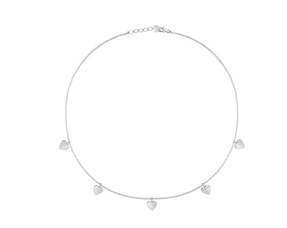 Collana con cuori pendenti della collezione I segni in oro bianco 9kt con diamante a taglio rotondo di caratura 0,01 di colore GH.