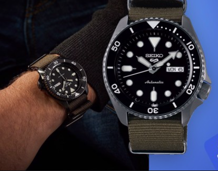 Orologio uomo seiko, Sport SRPD65K4, collezione 5 sports, movimento automatico, cal seiko 4r36, riserva di carica 41 ore , cassa acciaio 42.5 mm. quadrante Nero con indici luminosi lumibrite, ghiera girevole unidirezionale , vetro minerale hardlex, bracciale in tessuto nato, impermeabile fino a 10 bar Cassa Acciaio. Disponibile