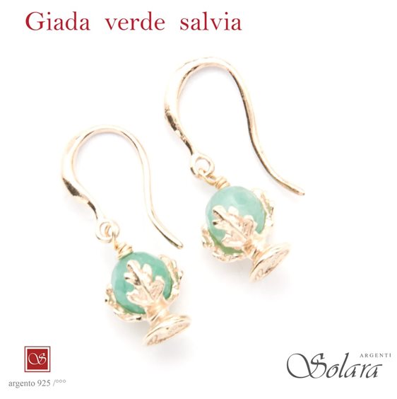 Orecchini argento rodiato con giada verde salvia