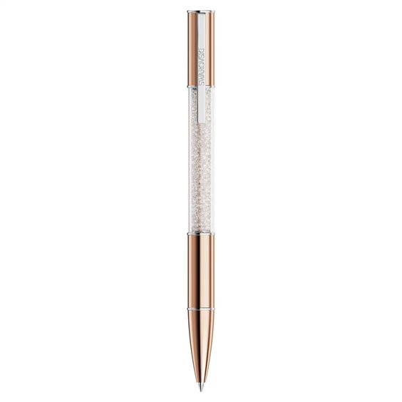 La penna a sfera Crystalline Lustre trae ispirazione dallo stile lussuoso. Questo inconfondibile strumento di scrittura presenta un fusto rotondo con finitura placcata in tonalità oro rosa, oltre a dettagli cromati che includono una pratica clip con l’incisione del nome Swarovski. Al centro, questo affascinante design è illuminato da circa 480 scintillanti Cristalli Swarovski, ciascuno meticolosamente inserito con l’iconica tecnica Crystalline. Un’aggiunta eccezionale alla tua scrivania o un regalo originale per gli scrittori che fanno parte della tua vita. I refill di inchiostro nero e blu sono disponibili per l’acquisto negli store Swarovski. Immagini a scopo illustrativo.