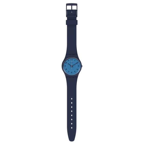 L'essenza del design incarnata in una cassa blu scuro opaco, cinturino, passante e fibbia realizzati con materiali di origine biologica e uno splendido quadrante blu spazzolato dall'effetto luminoso. SO28N103