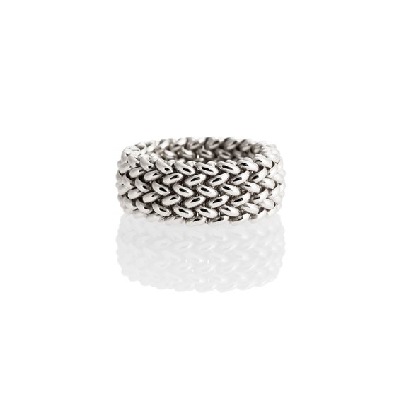 Anello da donna in argento a fascia bassa, maglia Chicco di riso. Un gioiello elegante per la donna urbana che cerca raffinatezza e perfezione. Disponibile nelle misure 11, 14, 18, 21. Anello morbido a 5 fili di catena.