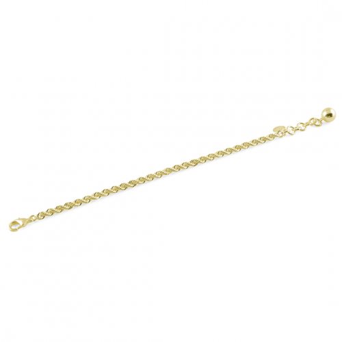 Bracciale di catena in maglia corda con chiusura a moschettone, regolabile grazie ad anelli di allungamento. La particolarissima catena a corda rende questo grazioso bracciale un accessorio unico ed elegante, per non essere mai scontati e banali. Abbinalo alla collana per essere ancor più glamour! Lunghezza: 17 cm + 3,5 cm.