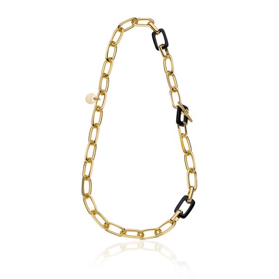 Collana di catena forzatina con bagno in oro e maglie in onice nera naturale. Grazie alla versatile chiusura a T-bar, questa collana può essere indossata a girocollo o ad Y