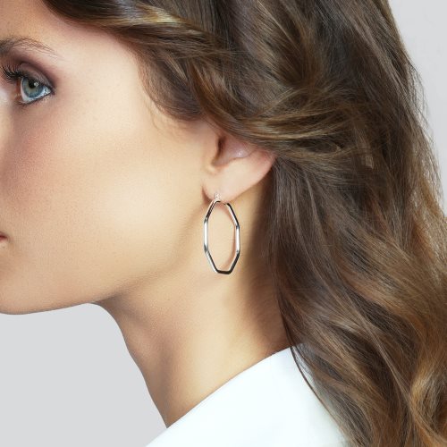 Orecchini argentati a cerchio ottagonale Orecchini a cerchio, design minimal a forma di ottagono. Diametro 3,00 cm. Eleganti, versatili e leggeri, questi orecchini a cerchio sono facili da abbinare, grazie al design essenziale e contemporaneo. Pensati per illuminare e valorizzare il viso, sono l'accessorio perfetto per ogni occasione. Un'idea regalo per lei, un piccolo dettaglio che fa la differenza. Rendi unico il tuo stile, sfoggia un gioiello Unoaerre