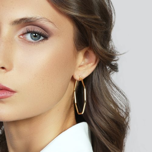 Orecchini a cerchio ottagonale dorati Orecchini a cerchio dorati, design a forma ottagonale, finish lucido. Diametro 4,50 cm. Raffinati, leggeri e versatili, questi eleganti orecchini a cerchio donna sono l'accessorio moda perfetto in ogni occasione. Da sfoggiare come vuoi tu, per impreziosire un outfit casual da tutti i giorni o per esaltare un look da sera. Un gioiello fashion, ideale per un regalo da donna, per una cerimonia o un anniversario. Scopri i gioielli Unoaerre, non smettere mai di brillare