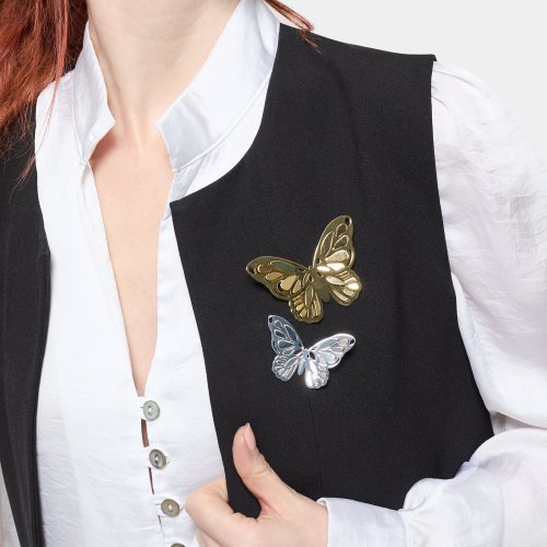 Spilla farfalla grande Spilla a forma di farfalla grande in finitura lucida dorata e lavorazione openwork. Da appuntare su giacche, cappotti, sciarpe e borse, le spille sono gli accessori perfetti per esprimere la propria unicità senza lasciare nulla al caso. Un gioiello dal design a farfalla iperfemminile e finemente lavorato con traforo openwork, ideale per impreziosire ogni look con un tocco sofisticato ed originale.