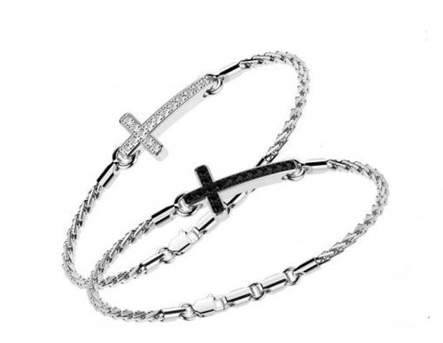 Bracciale da uomo in argento 925, rodiato ipoallergenico, con croce di zirconi.